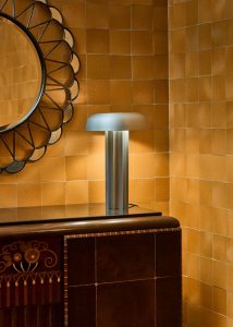 Tucked into a covered patio, the whole scene feels like a rooftop cocktail hour waiting to happen. And that golden sputnik light overhead? Just the right dose of drama.
