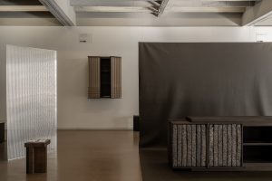 I love how the clean fireplace opening balances the ribbed tile backdrop. It feels intentional and elevated, like a space that doesn’t need extra decor to prove a point.